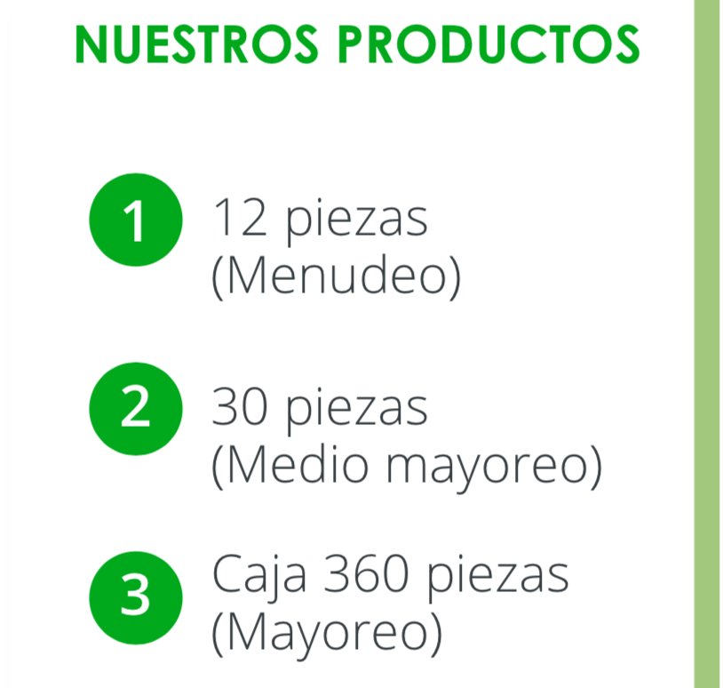 • Nuestros insumos de empaque y almacenamiento son en su mayoría de material reciclado.